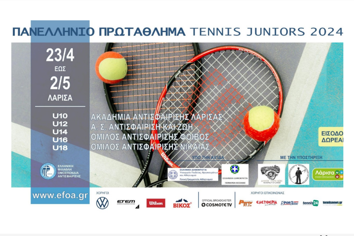 Η Ελληνική Φίλαθλη Ομοσπονδία Αντισφαίρισης, εξέδωσε στις 23.04.24 το ακόλουθο δελτίο τύπου, για τη διοργάνωση του Πανελλήνιου Πρωταθλήματος juniors στη Θεσσαλία.